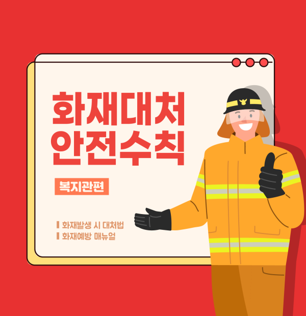 ๋ณต์ง€๊ด€ ๋‚ด ํ™”์žฌ ๋ฐœ์ƒ ์‹œ ๋น ๋ฅด๊ณ  ์•ˆ์ „ํ•œ ๋Œ€์ฒ˜๊ฐ€ ์ค‘์š”ํ•ฉ๋‹ˆ๋‹ค!